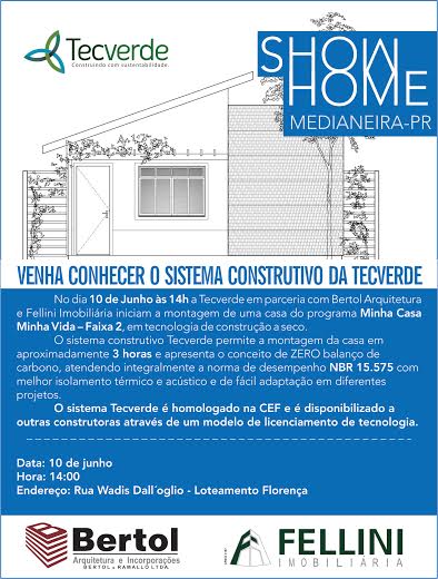 O show home vai mostrar na prática a eficiência do sistema construtivo Tecverde para habitações de interesse social. A casa será um modelo que a Tecverde desenvolveu para o programa Minha Casa Minha Vida – Faixa 2, com tecnologia de construção a seco.